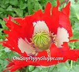 500 Seeds. Papaver somniferum. Danish Flag. Red and White CLOWN POPPY. If you love poppies, this one's a heart-stopper! Bright red, fringed petals with a pure white cross, make a spectacular display. This is the brightest, prettiest shade of Red that I have ever seen! Just Breathtaking! HUGE BLOOMS! Up to 5 inches wide. Most poppies are very easy to grow. They are a favorite of gardeners in every state for rock gardens, flower beds, containers, and most anyplace that you want color. Since poppies are self-sowing, if you allow them to go to seed you may only need to plant them once. 500 count poppy seed pack. Please see all the other poppy seed varieties available from One Stop Poppy Shoppe.