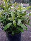 Night Blooming Jasmine, also known as Cestrum nocturnum has an abundance of small white flowers that have a great fragrance. The night blooming jasmine is a powerful addition to the evening scented garden. Use the cestrum as a hedge, screen, or plant near or under windows to fully enjoy the pleasant aroma. The night blooming jasmine grows to about 8 feet or clip to any desired shape. Evergreen, growing in full to partial sun and tolerating alkaline soil. Use this fragrant jasmine in containers or in the ground. Also attracts birds. Hardy to USDA zone 9 and all higher zones. Move to a more protected spot for those in extreme winter areas. Shipped as a potted one gallon plant to ensure a healthier start when planted in yard or garden.