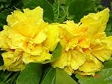 Beautiful showy hisbiscus with the double plus features of nice showy blooms on a tough, hardy and easy to grow to plant. Flowers are dense and fully doubled, and are a very bright, showy, golden yellow hue. Winter hardy in zones 10 & south, elsewhere these can be grown as annuals or wintered over in pots.